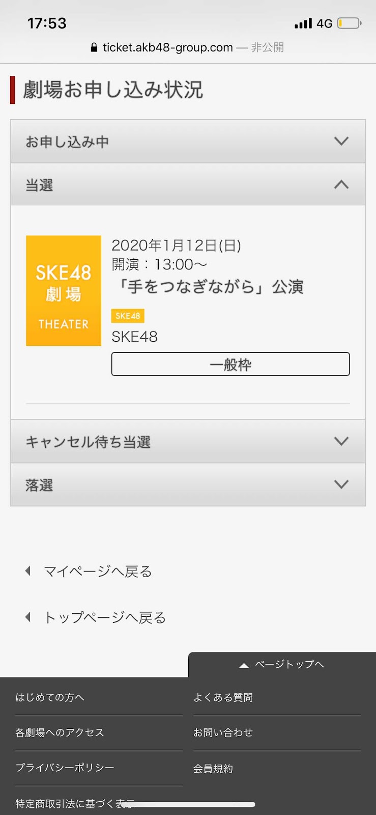 正月明けの3連休、特にやることもないので、名古屋のSKE48劇場公演に申し込んだ。半分投げやりだったが、思いのほか当選通知が来た。