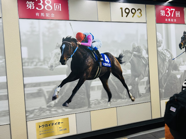 昔は薄暗くて殺風景だった地下道だが、今はきれいになって歴代の有馬記念馬と皐月賞馬が顕彰されている。